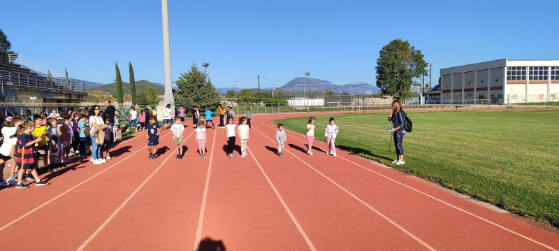 Μετά την άφιξη στο στάδιο διεξήχθησαν αγώνες σκυταλοδρομίας για όλες τις τάξεις του σχολείου και στη συνέχεια οι μαθητές/τριες συμμετείχαν σε αθλοπαιδιές ομαδικών αθλημάτων σε μια προσπάθεια να αναδειχθούν τα οφέλη και η σημασία της φυσικής δραστηριότητας, της σωματικής άσκησης και του αθλητισμού για την υγεία και τη βελτίωση της ποιότητας ζωής.