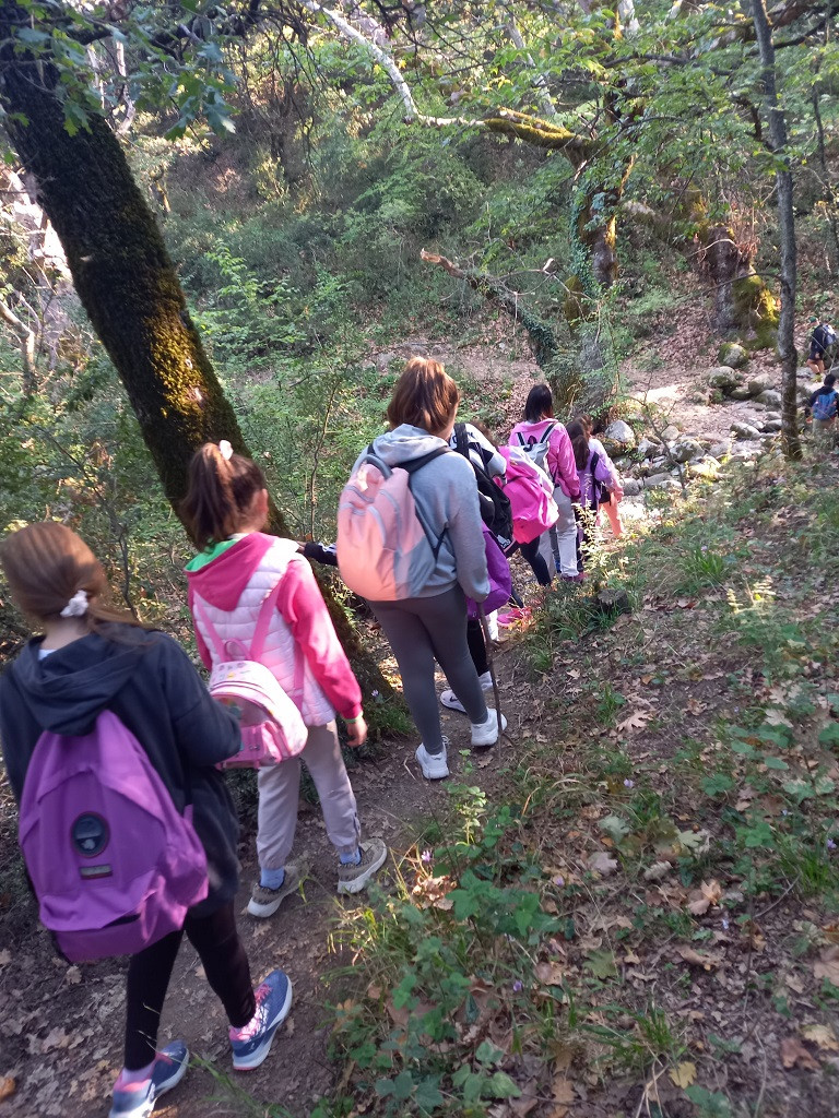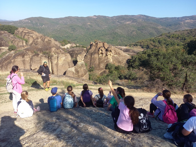 Πολλές φορές σταματούσαμε για να πάρουμε μια ανάσα αλλά και για να ακούσουμε με προσοχή τον κύριο Λάμπρο να μας εξηγεί αυτά που βλέπαμε. Μας μίλησε για τις ονομασίες των βράχων, το παλιό Καστράκι, την ιστορία των μοναστηριών και για όλα τα δέντρα, τα φυτά και τα ζώα που συναντήσαμε. Ιδιαίτερη εντύπωση μάς έκανε μια λακούβα που την είχαν φτιάξει τα αγριογούρουνα . Ο κύριος Χρήστος μάς έδειξε ένα τοξικό μανιτάρι που το λένε Βολιώτη ή Σατανά που όταν το κόβεις, από άσπρο γίνεται γαλάζιο. Ακόμη μας μίλησε για τα είδη των πετρωμάτων και για τον σχηματισμό των μετεωρίτικων βράχων. Μας έδειξε και πώς γίνεται η αναρρίχηση.