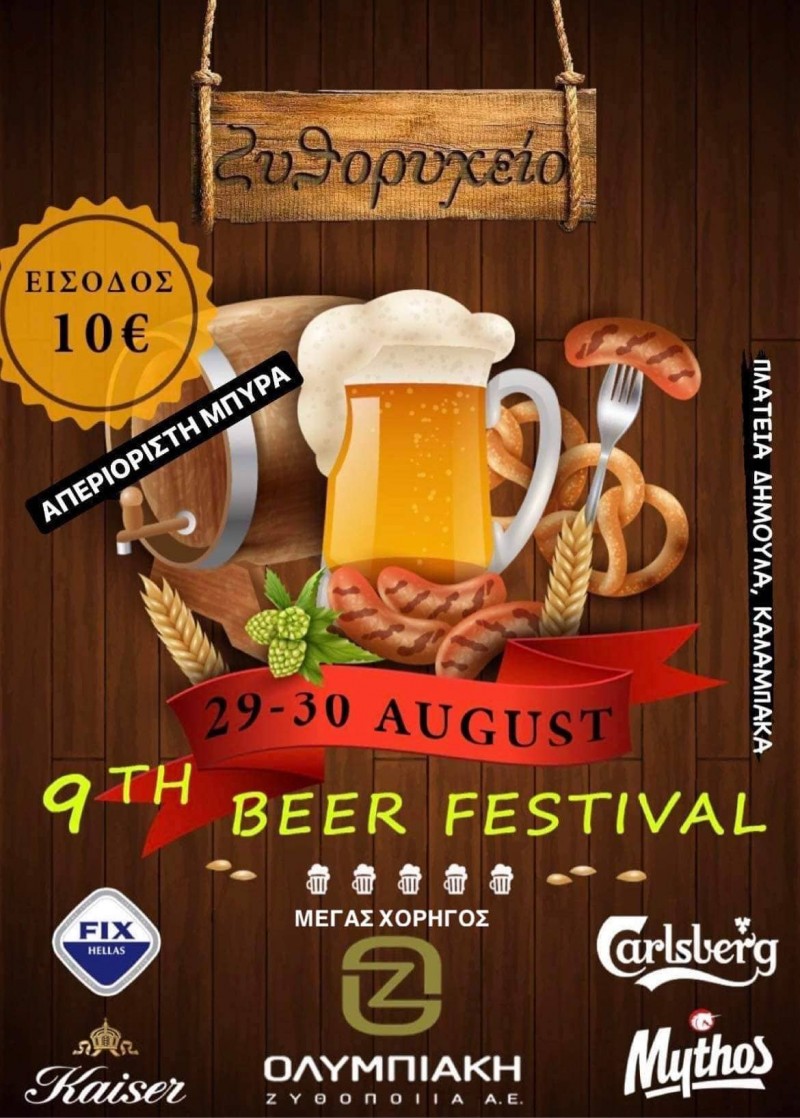 Το 9ο φεστιβάλ μπύρας πραγματοποιεί η μπυραρία Ζυθορυχείο της Καλαμπάκας και φέτος.