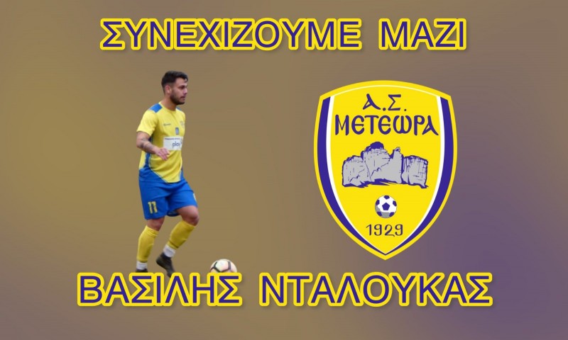 Ο Α.Σ. ΜΕΤΕΩΡΑ ανακοινώνει την ανανέωση της συνεργασίας με δύο ακόμα ποδοσφαιριστές, τον ΒΑΣΙΛΗ ΝΤΑΛΟΥΚΑ και τον ΓΙΩΡΓΟ ΠΟΥΛΙΟ.