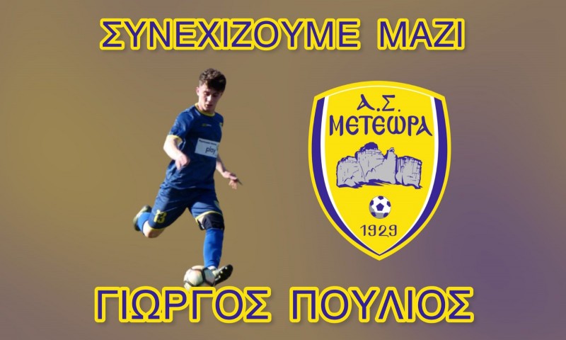 Ο Α.Σ. ΜΕΤΕΩΡΑ ανακοινώνει την ανανέωση της συνεργασίας με δύο ακόμα ποδοσφαιριστές, τον ΒΑΣΙΛΗ ΝΤΑΛΟΥΚΑ και τον ΓΙΩΡΓΟ ΠΟΥΛΙΟ.