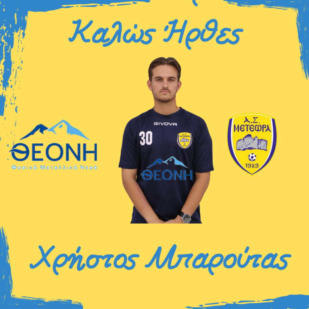 Ο ΑΣ Μετέωρα ανακοινώνει με ιδιαίτερη χαρά την απόκτηση του 20χρονου τερματοφύλακα Χρήστου Μπαρούτα ο οποίος πέρυσι ήταν στον ΑΟ Τρίκαλα.
