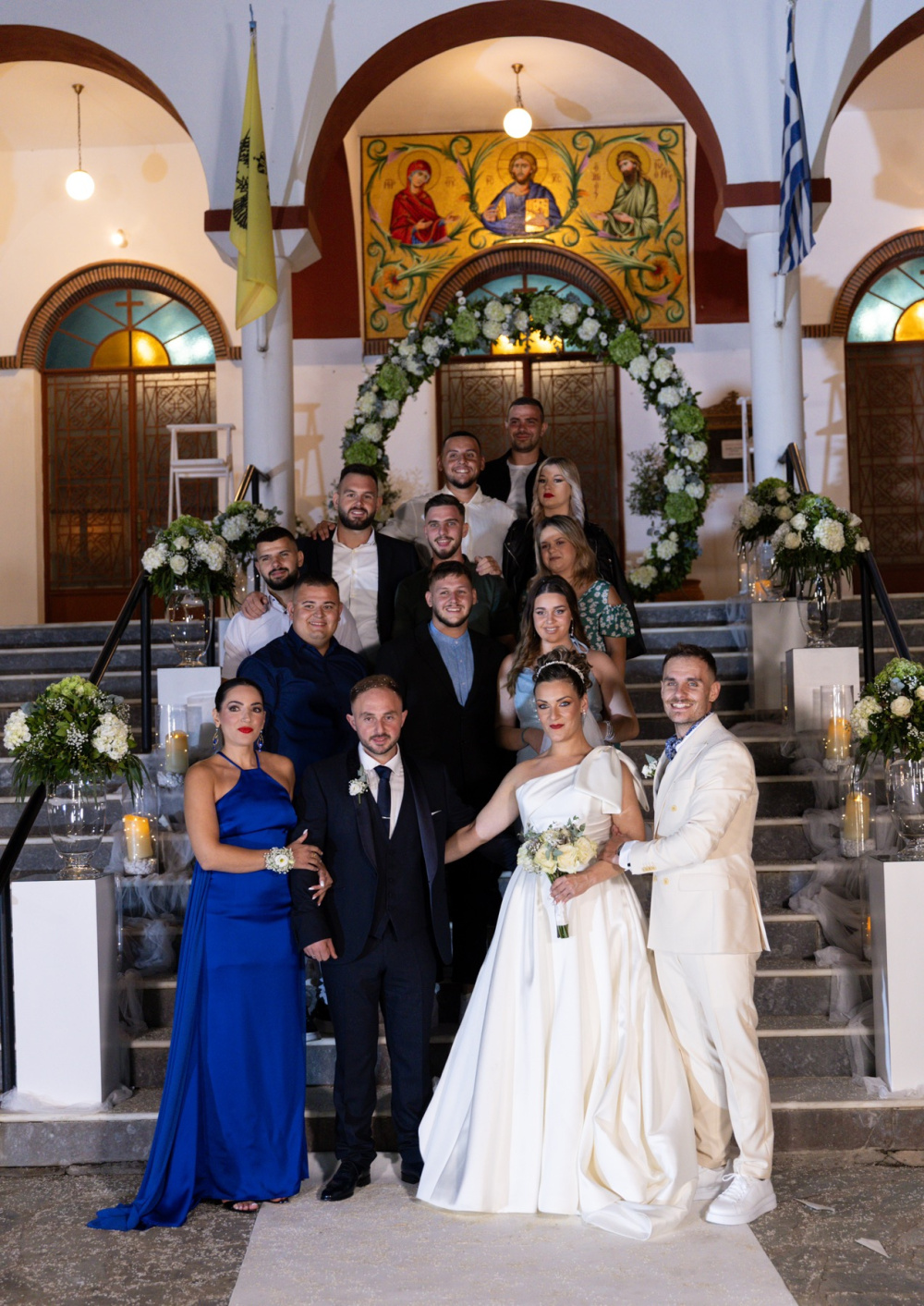 Κουμπάροι του ζευγαριού στάθηκαν με χαρά ο Μιχάλης Σταυράκης και η Ειρήνη Ταξίδου, δίνοντας με την παρουσία τους ξεχωριστό τόνο στη λαμπρή τελετή.