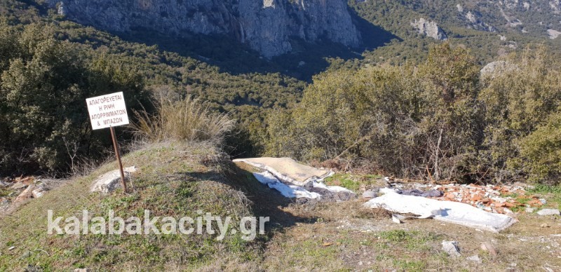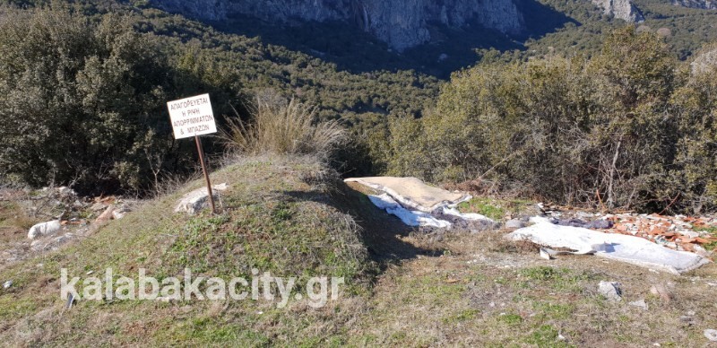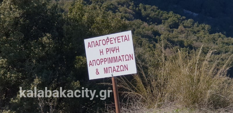 Στην έξοδο του χωριού, λίγο μετά το πάρκο που έχει μείνει από το φωτιστικό μόνο ο σιδερένιος σκουριασμένος ιστός ( !!! ) υπάρχει πινακίδα που κάνει γνωστή την απαγόρευση μπαζών… με αυτά να υπάρχουν γύρω της εδώ και καιρό!!!
