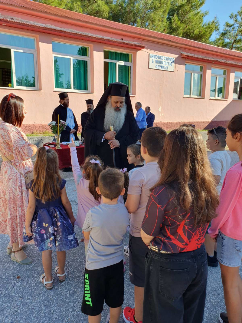 Την Τετάρτη 11 Σεπτεμβρίου, ημέρα ενάρξεως του νέου σχολικού έτους 2024-2025, ο Σεβ. Μητροπολίτης Σταγών και Μετεώρων κ. Θεόκλητος τέλεσε την ακολουθία του αγιασμού στις σχολικές μονάδες των χωριών του Αγιοφύλλου (Νηπιαγωγείο και Δημοτικό Σχολείο) και της Οξύνειας (Νηπιαγωγείο, Δημοτικό Σχολείο και Γυμνάσιο).