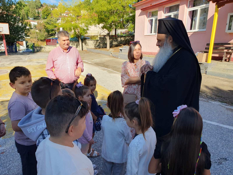 Ο κ. Θεόκλητος, κατά την φετινή έναρξη των Σχολείων, επέλεξε να παραβρεθεί στις ορεινές και απόμακρες περιοχές της Μητροπόλεώς του. Ο σεπτός Ποιμενάρχης μας έδωσε τις ευχές του στους μικρούς μαθητές αλλά και το εκπαιδευτικό προσωπικό για ευλογημένο διδακτικό έτος, το οποίο θα φέρει πρόοδο και μάθηση.