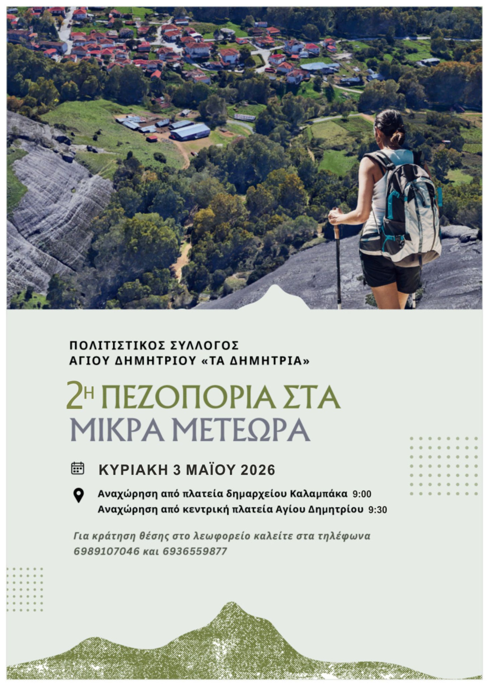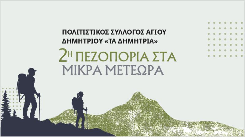 Ο Πολιτιστικός Σύλλογος Αγίου Δημητρίου «Τα Δημήτρεια» σας προσκαλεί στη 2η πεζοπορία μας στα όμορφα μονοπάτια του χωριού και της περιοχής των Μικρών Μετεώρων.