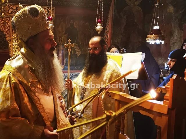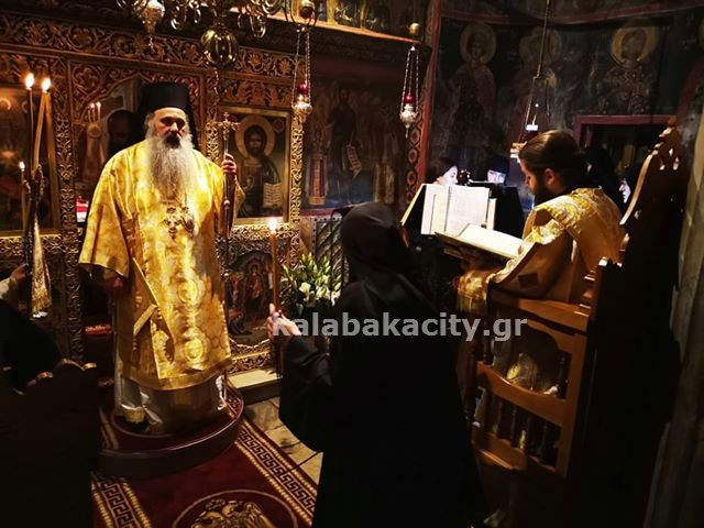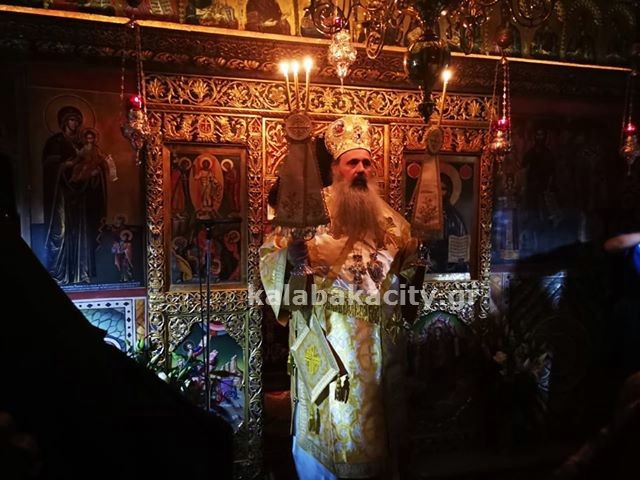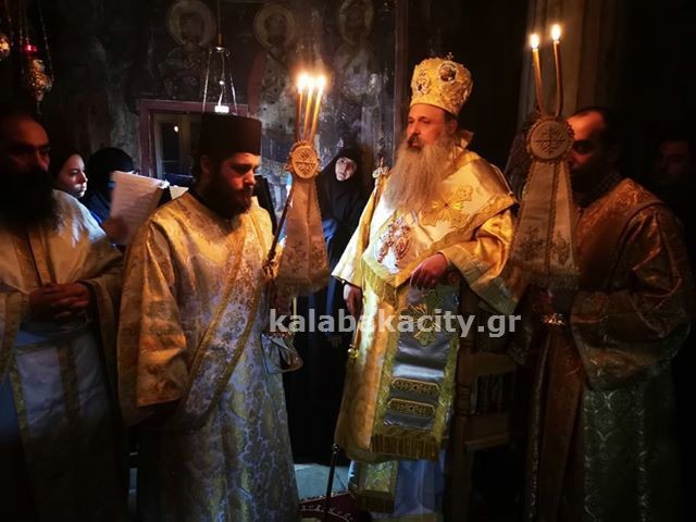 Την αγρυπνία τέλεσε ο Μητροπολίτης Σταγών και Μετέωρων κ.κ. Θεόκλητος πλαισιωμένος από τον Πρωτοσύγκελο της Ι. Μητρόπολης μας π. Νήφωνα Καψάλη.