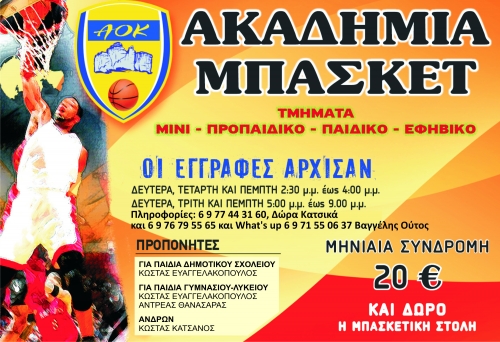 Η μηνιαία συνδρομή είναι 20 ευρώ και δώρο η μπασκετική στολή!