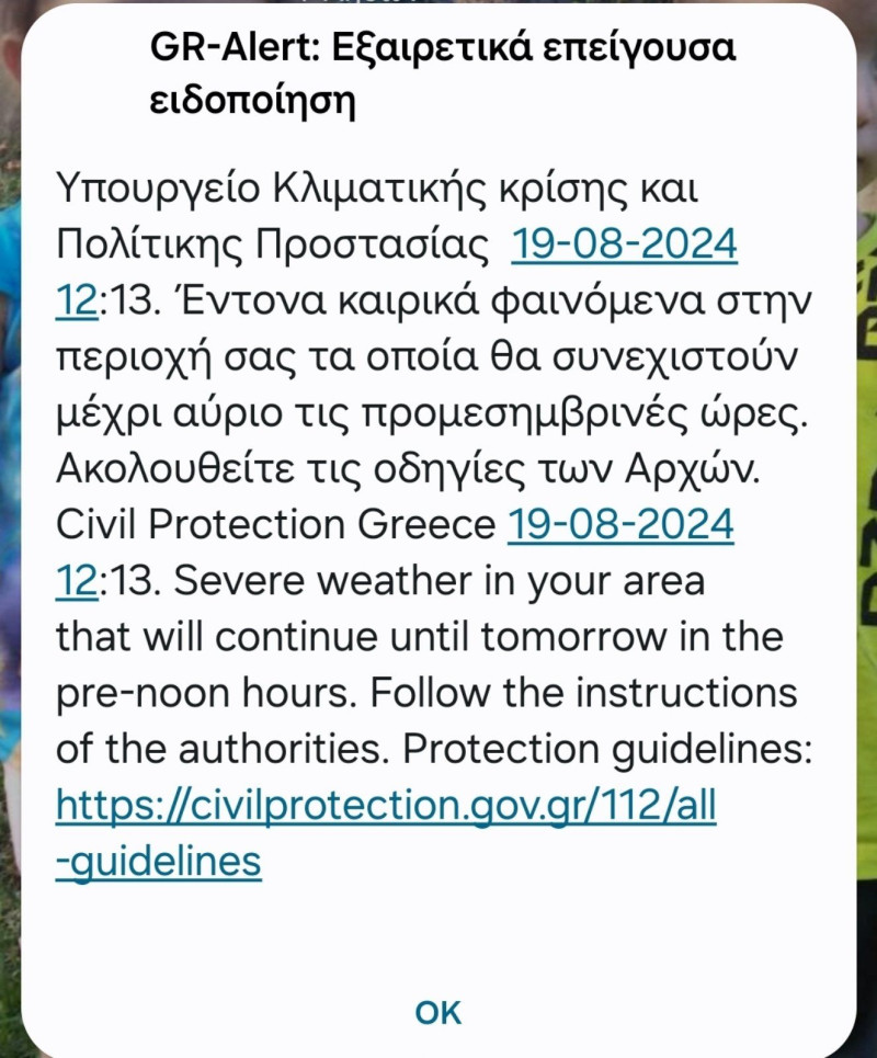 Μήνυμα στα κινητά των κατοίκων του Κλεινοβού για έντονα καιρικά φαινόμενα ήρθε σήμερα στις 12:13 το μεσημέρι από την Πολιτική Προστασία.
