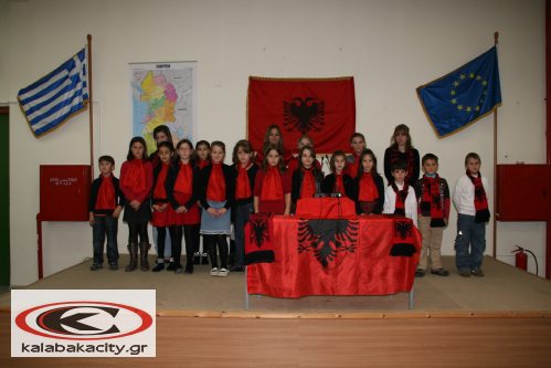 Σε μια λιτή εκδήλωση οι 20 μαθητές του Αλβανικού Σχολείου που λειτουργεί στην Καλαμπάκα, σε αίθουσα του Εργατικού Κέντρου πραγματοποίησαν την δική τους εορτή για την απελευθέρωση της χώρας τους το 1912.