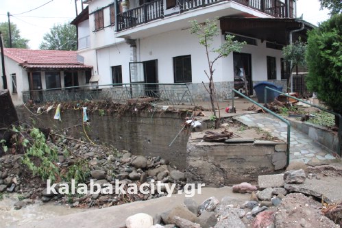 Επάνω το σπίτι από το οποίο διήλθε το νερό του ρέματος