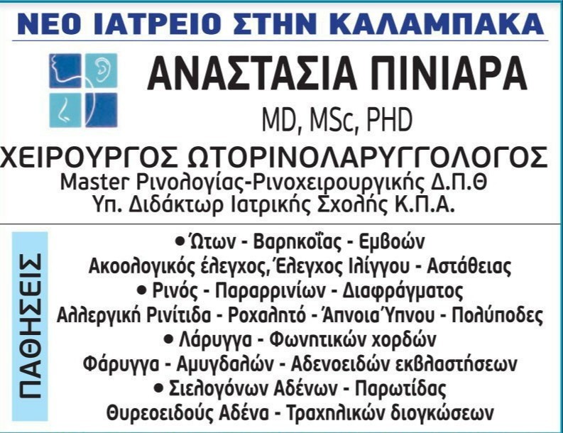 Ανακοίνωση του Ιατρείου της Χειρουργού Ω.Ρ.Λ. Αναστασίας Πινιάρα Ανακοινώσεις Από admin Δημοσίευση Ιούλ 1, 2019 -9:18 0 947 Κοινοποίηση FacebookTwitterΗλεκτρονικό ΤαχυδρομείοViber Η Ιατρός Χειρουργός Ω.Ρ.Λ. της πόλης μας κα Αναστασία Πινιάραανακοινώνει πως θα βρίσκεται στο ιατρείο της στην Καλαμπάκα ( Τρικάλων 16 – 2ος όροφος ) από: 3 έως 6 Ιουλίου 2019 Για επικοινωνία καλέστε: 24320 77212 και 6979221940 0 947 Κοινοποίηση