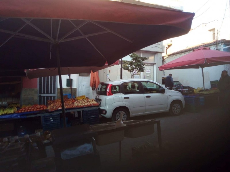Το όχημα πλέον είναι σταθμευμένο ανάμεσα στους πάγκους… και θα φύγει από κει αργά το μεσημέρι…