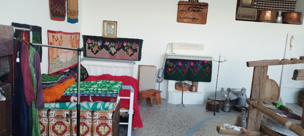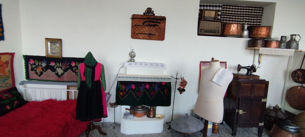 Χωρίζεται σε δύο μέρη: Στο πρώτο έγινε αναπαράσταση ενός παραδοσιακού σπιτιού, με κρεβάτι , τζάκι, αργαλειό κ σκεύη κουζίνας.