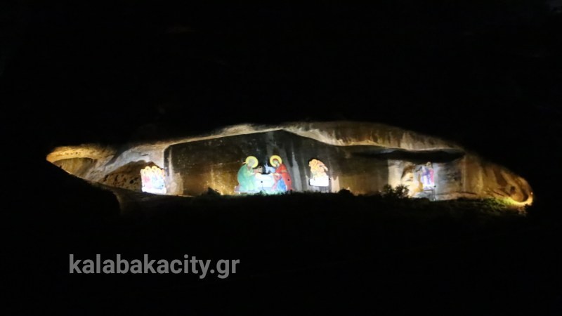 Στη συνέχεια έγινε η φωταγώγηση της χριστουγεννιάτικης φάτνης που βρίσκεται σε χώρο των Μετεώρων παρουσία του Μητροπολίτη Σταγών και Μετεώρων κ.κ. Θεόκλητου του Δημάρχου κ. Αλέκου και αντιδημάρχων.