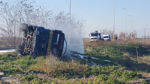 Φορτηγό που μετέφερε υγραέριο, και συγκεκριμένα προπάνιο, ανατράπηκε μετά τις 2 το μεσημέρι έξω από το χωριό Νίκη του Νομού Λάρισας,