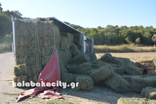 Φορτηγό με μεγάλο φορτίο ανετράπη πριν λίγα λεπτά στην επαρχιακή οδό Καλαμπάκας – Αμπελίων.