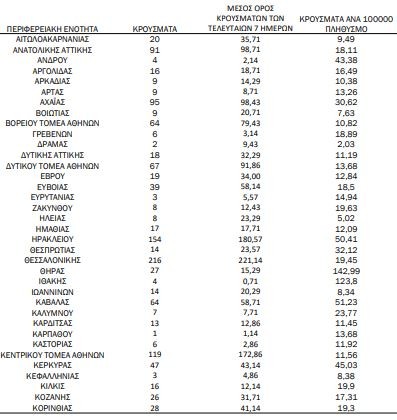 Αναλυτικά, η γεωγραφική κατανομή των σημερινών κρουσμάτων: