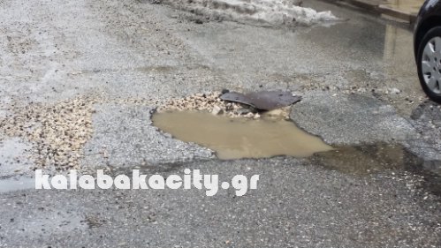 Άνοιξαν τρύπες στο οδόστρωμα της Καλαμπάκας