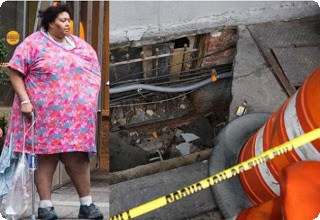 Η 32χρονη κοινωνική λειτουργός, που ζυγίζει 177 κιλά και έχει ύψος περίπου 1,90 εκατ., έπεσε σε μια τρύπα όταν ξαφνικά το πεζοδρόμιο υποχώρησε και την κατάπιε!