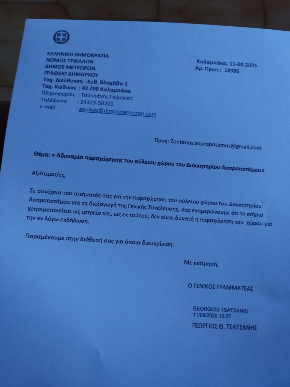 Ακολουθεί η απάντηση του προέδρου Τ.Κ. Καλλιρροης στην καταγγελία του Συλλόγου Ζωντανός Ασπροπόταμος.