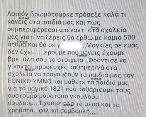 To bloko.gr δημοσίευσε σήμερα ένα μέρος της απειλητικής επιστολής προς τον Υπουργό Παιδείας.