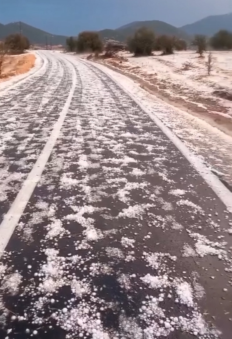 Το μέγεθος του χαλαζιού αλλά και η σφοδρότητα της πτώσης ήταν τέτοια, που σε λίγα λεπτά το τοπίο είχε γίνει λευκό παραπέμποντας σε.. χιονισμένο!