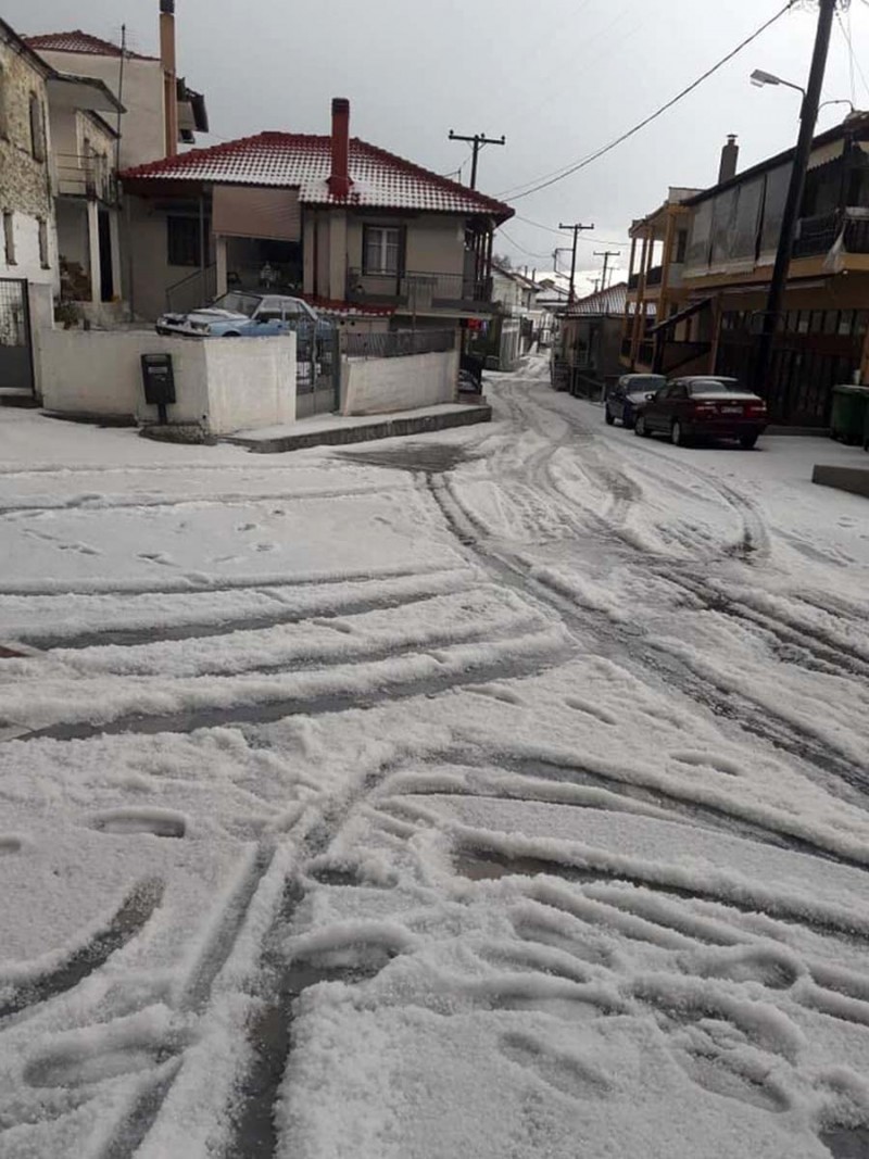 Στη Βερδικούσια του δήμου Ελασσόνας σφοδρή χαλαζόπτωση χαλάζι έπληξε την περιοχή με μανία σε μέγεθος κερασιού, καλύπτοντας τα πάντα στο πέρασμά του.