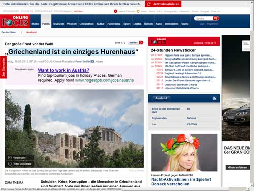 Από Καλαμπακιώτη ο τίτλος “Η Ελλάδα είναι ένα μεγάλο πορνείο” στο Γερμανικό Focus