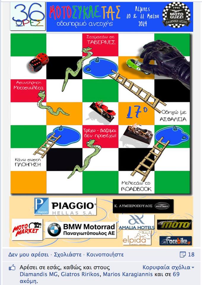 Η ΜΟ.ΛΕ.Κ,η Λέσχη Μοτοσικλετιστών της Καλαμπάκας είναι στην ευχάριστη θέση να σας ενημερώσει ότι η Ελληνική Λέσχη ΜΟΤΟ GUZZI επιστρέφει στην πόλη μας για το 17ο οδοιπορικό αντοχής 9-11 Μαΐου 2014.