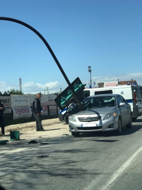 Από τον αέρα φωτεινός σηματοδότης έπεσε πάνω σε αυτοκίνητο στη Γιάννουλη Λάρισας