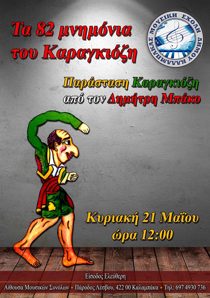 Από τον Δημήτρη Μπάκο «Τα 82 Μνημόνια του Καραγκιόζη» στη Μουσική Σχολή Δήμου Καλαμπάκας