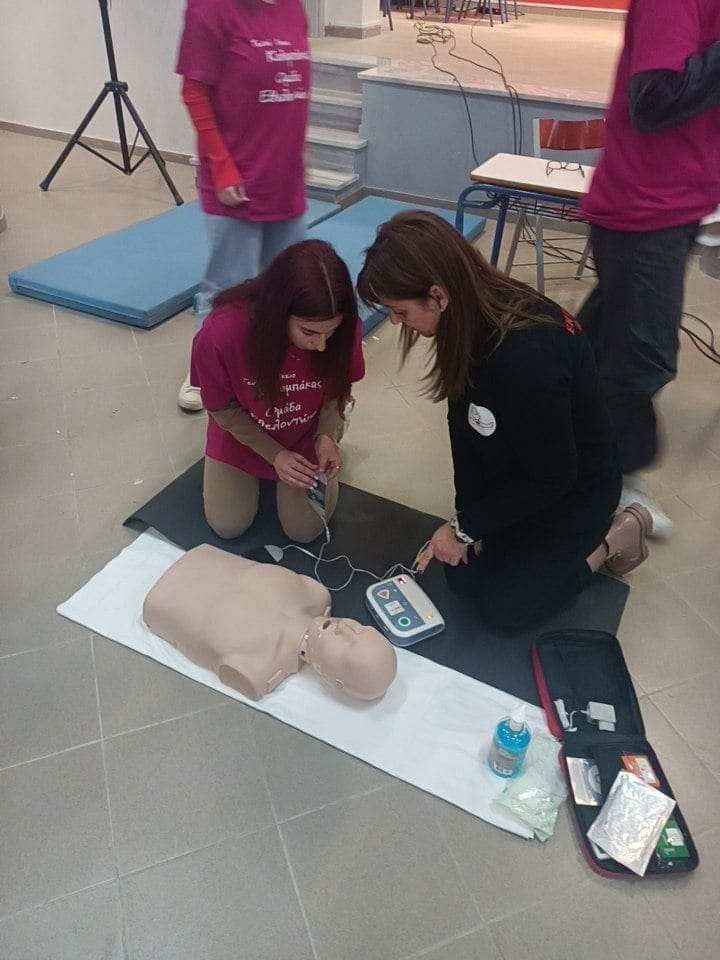 - Τη δράση εκπαίδευσης στη χρήση Απινιδωτή και στην καρδιοπνευμονική αναζωογόνηση (ΚΑΡΠΑ) τον Μάρτιο του 2023, σε συνεργασία με το Δ ΙΕΚ του Γ.Ν Τρικάλων με την ευκαιρία της δωρεάς στο σχολείο μας ενός αυτόματου εξωτερικού απινιδωτή, από τον κ. Αλέξανδρο Παπαγεωργόπουλο.