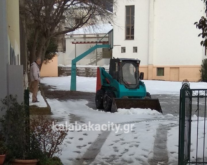 Ξεκίνησε σήμερα η “επιχείρηση” απομάκρυνσης του χιονιού από τις αυλές των Δημοτικών Σχολείων της Καλαμπάκας.