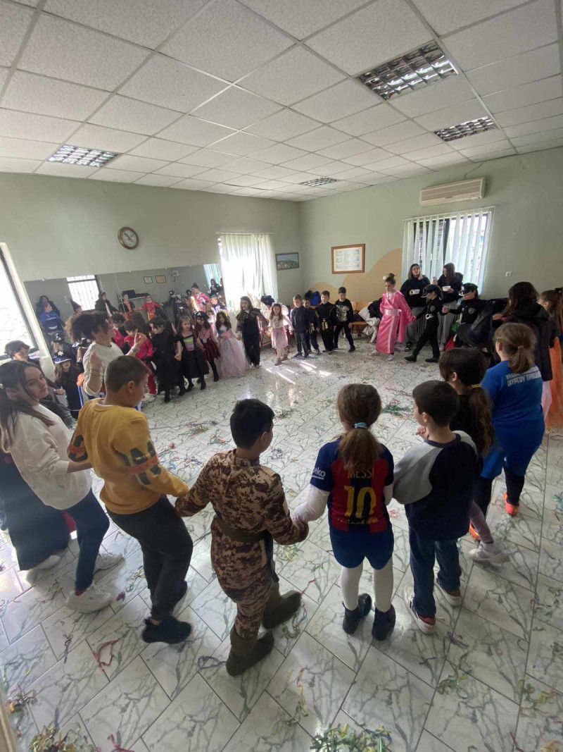 Προσφέρθηκαν εδέσματα και τα παιδιά διασκέδασαν με αποκριάτικους χορούς και τραγούδια.