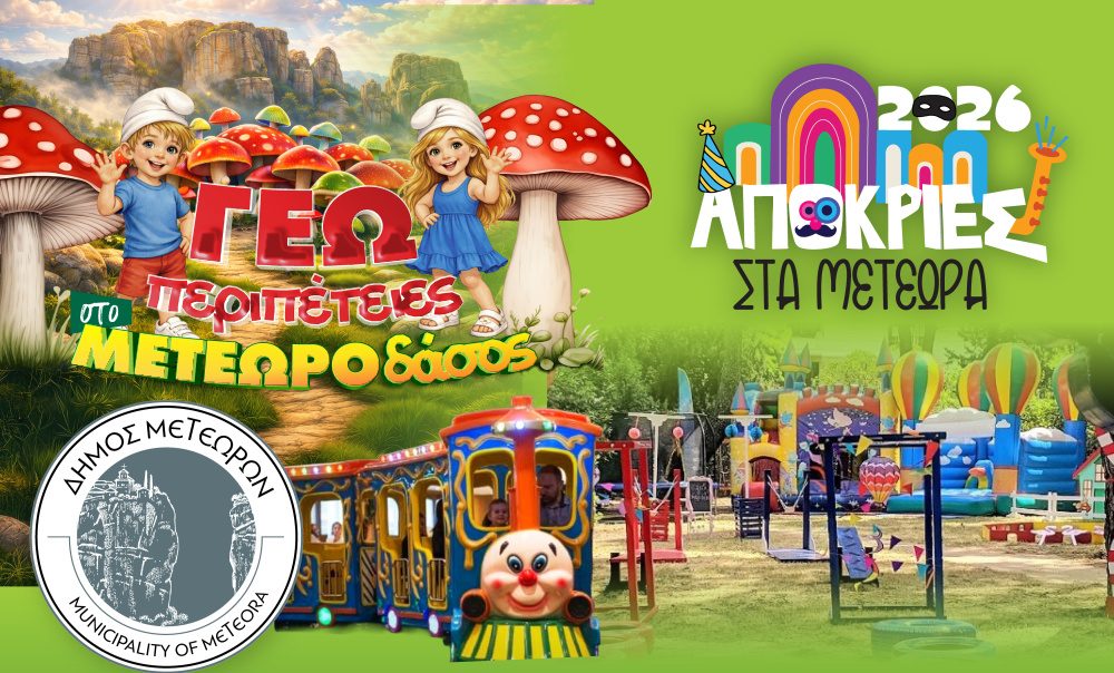 Ο Δήμος Μετεώρων προσκαλεί μικρούς και μεγάλους σε ένα μοναδικό αποκριάτικο ταξίδι γεμάτο φαντασία, παιχνίδι και μαγεία! Την Κυριακή 22 Φεβρουαρίου 2026, από τις 11:00 έως τις 18:00, η Πλατεία «Λιάπη» στην Καλαμπάκα μεταμορφώνεται σε ένα παραμυθένιο ΜΕΤΕΩΡΟδάσος, όπου τα παιδιά γίνονται πρωταγωνιστές σε έναν κόσμο γεμάτο χρώματα, γέλια και αξέχαστες εμπειρίες.