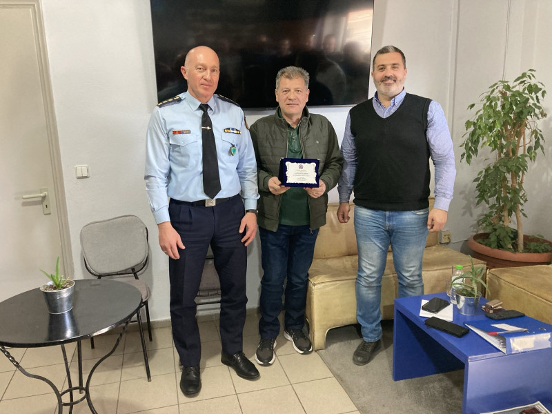 Την 08.02.2024, στη λέσχη της Διεύθυνσης Αστυνομίας Τρικάλων, ο Διευθυντής της Διεύθυνσης Αστυνομίας Τρικάλων, Αστυνομικός Διευθυντής κ. Δημήτριος ΜΗΤΡΑΙΝΑΣ και ο Διευθυντής της Υποδιεύθυνσης Ασφάλειας Τρικάλων, Αστυνομικός Υποδιευθυντής κ. Γεώργιος ΛΙΟΥΡΑΣ, παρουσία και του αστυνομικού προσωπικού της εν λόγω Υπηρεσίας, απένειμαν τιμητική πλακέτα στον Αστυνόμο Α΄ ε.α. κ. Αλέξανδρο ΜΠΑΣΙΟΥΡΗ για την προσφορά του στην Υπηρεσία, οι οποίοι τον ευχαρίστησαν για την άψογη συνεργασία και το ήθος που επέδειξε, την ευγένεια, τη συναδελφικότητα και τον επαγγελματισμό που τον διέκριναν στην υπηρεσιακή του ζωή.