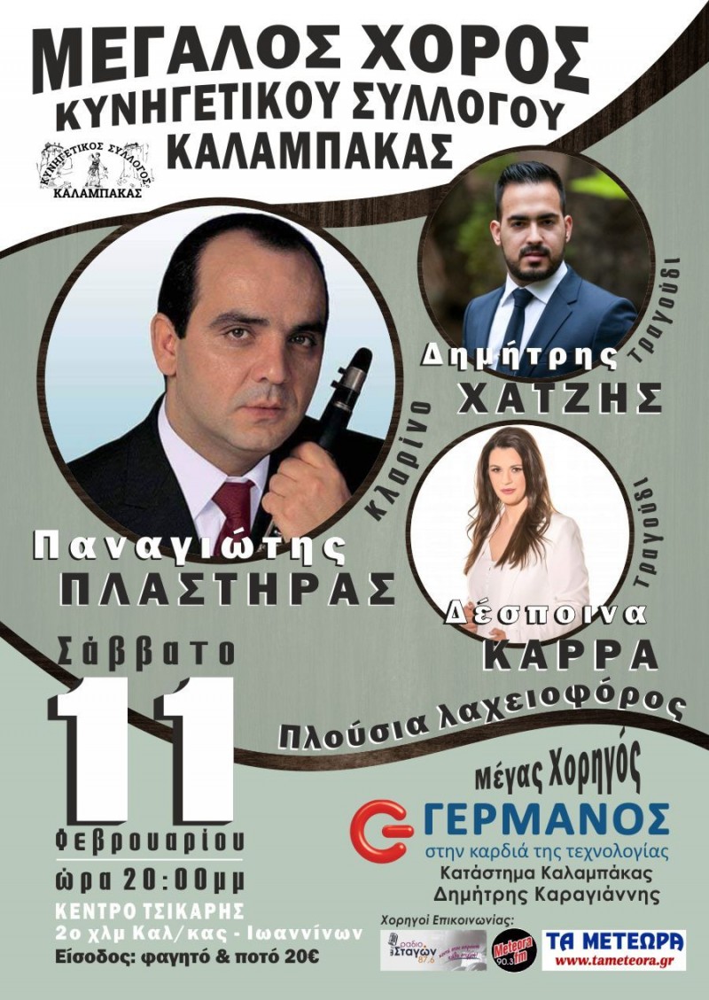 Απόψε, Σάββατο 11 Φεβρουαρίου στο κέντρο ΤΣΙΚΑΡΗΣ θα πραγματοποιηθεί ο Μεγάλος Χορός του Κυνηγετικού Συλλόγου Καλαμπάκας!