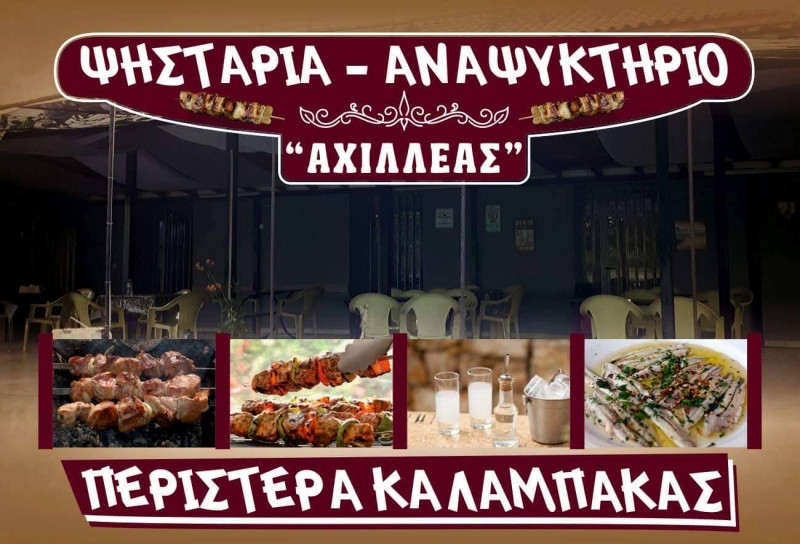 Απόψε Σάββατο 9 Ιουλίου στις 21:00 θα γίνουν στην Περιστέρα Καλαμπάκας τα εγκαίνια της Ψησταριάς – Αναψυκτηρίου «ΑΧΙΛΛΕΑΣ»