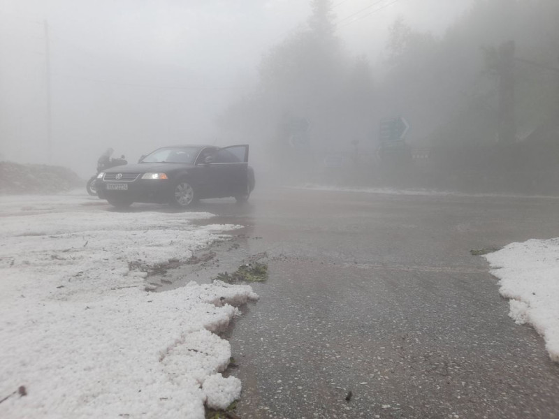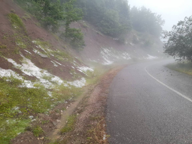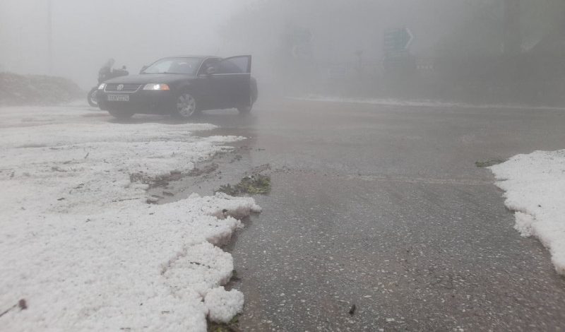 Ισχυρές καταιγίδες και χαλαζοπτώσεις σημειώθηκαν νωρίς το μεσημέρι της Κυριακής στα ορεινά των Τρικάλων την ώρα που τα προηγούμενα 24ωρα καταγράφονταν στη χώρα υψηλές θερμοκρασίες.