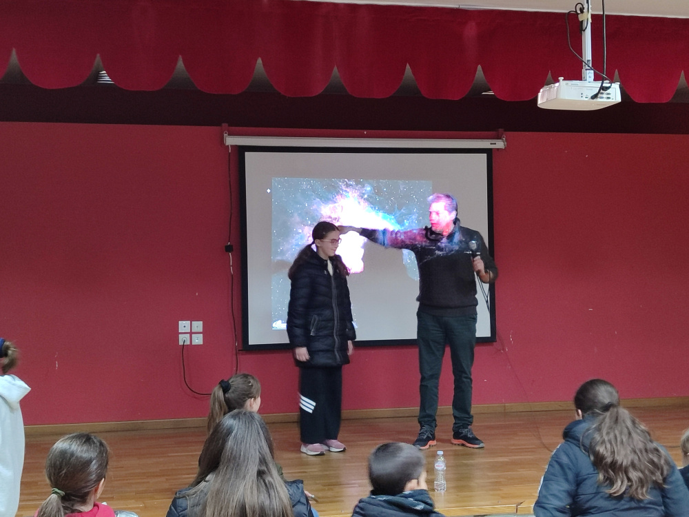 Ο κ. Ντούτσουλης Γεώργιος, ερασιτέχνης αστρονόμος, έφερε και εγκατέστησε στον αύλειο χώρο του σχολείου το ψηφιακό του τηλεσκόπιο. Προηγήθηκε παρουσίαση στην αίθουσα εκδηλώσεων όπου μικροί και μεγάλοι εισηγήθηκαν στο τι θα βλέπαμε στη συνέχεια. Οι μαθητές και οι μαθήτριες έθεσαν ερωτήσεις και απορίες και πήραν απαντήσεις σχετικά με τα μυστήρια του σύμπαντος.