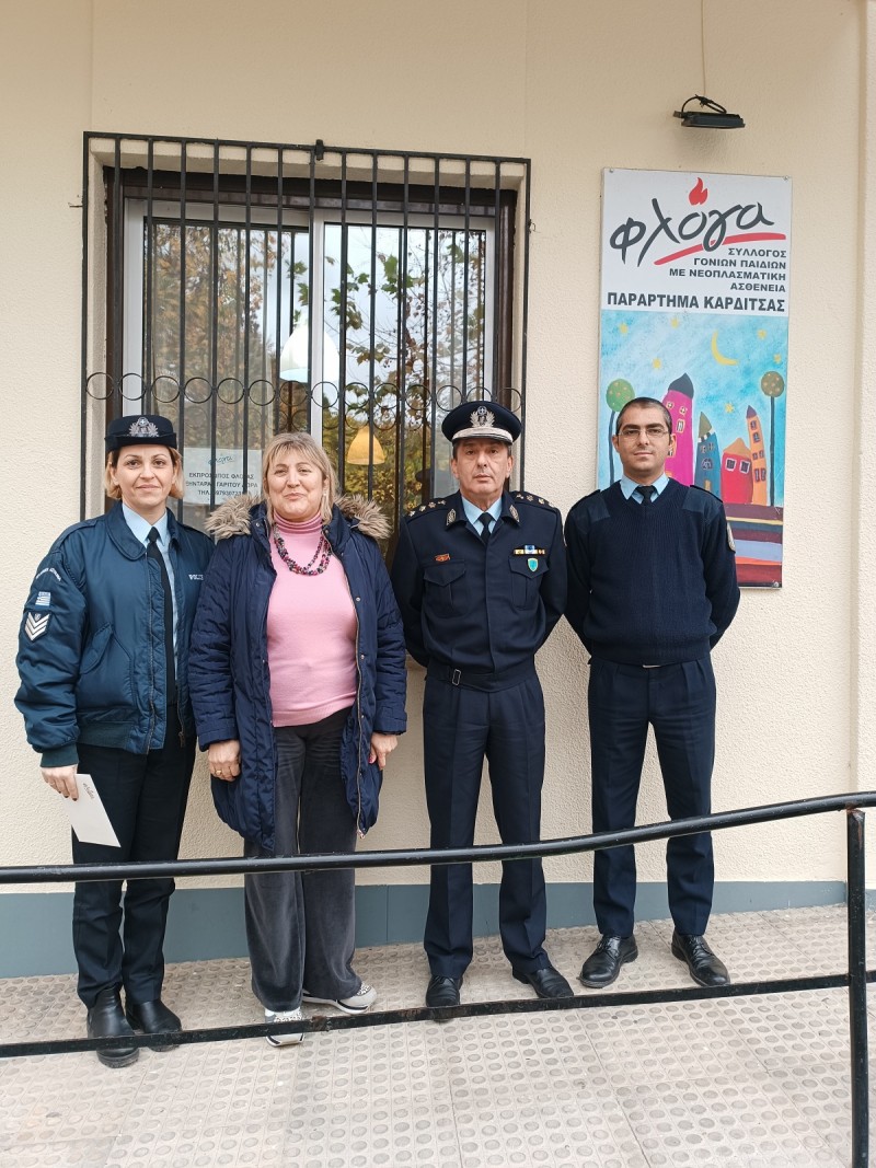 Τέλος, στην Καρδίτσα, ο Α΄ Υποδιευθυντής της Διεύθυνσης Αστυνομίας Καρδίτσας, Αστυνομικός Διευθυντής Αθανάσιος Ράικος, συνοδευόμενος από αντιπροσωπεία αστυνομικών, παρέδωσαν τα συγκεντρωθέντα είδη για την ενίσχυση του συλλόγου γονιών παιδιών με νεοπλασματική ασθένεια «ΦΛΟΓΑ» – παραρτήματος Καρδίτσας.