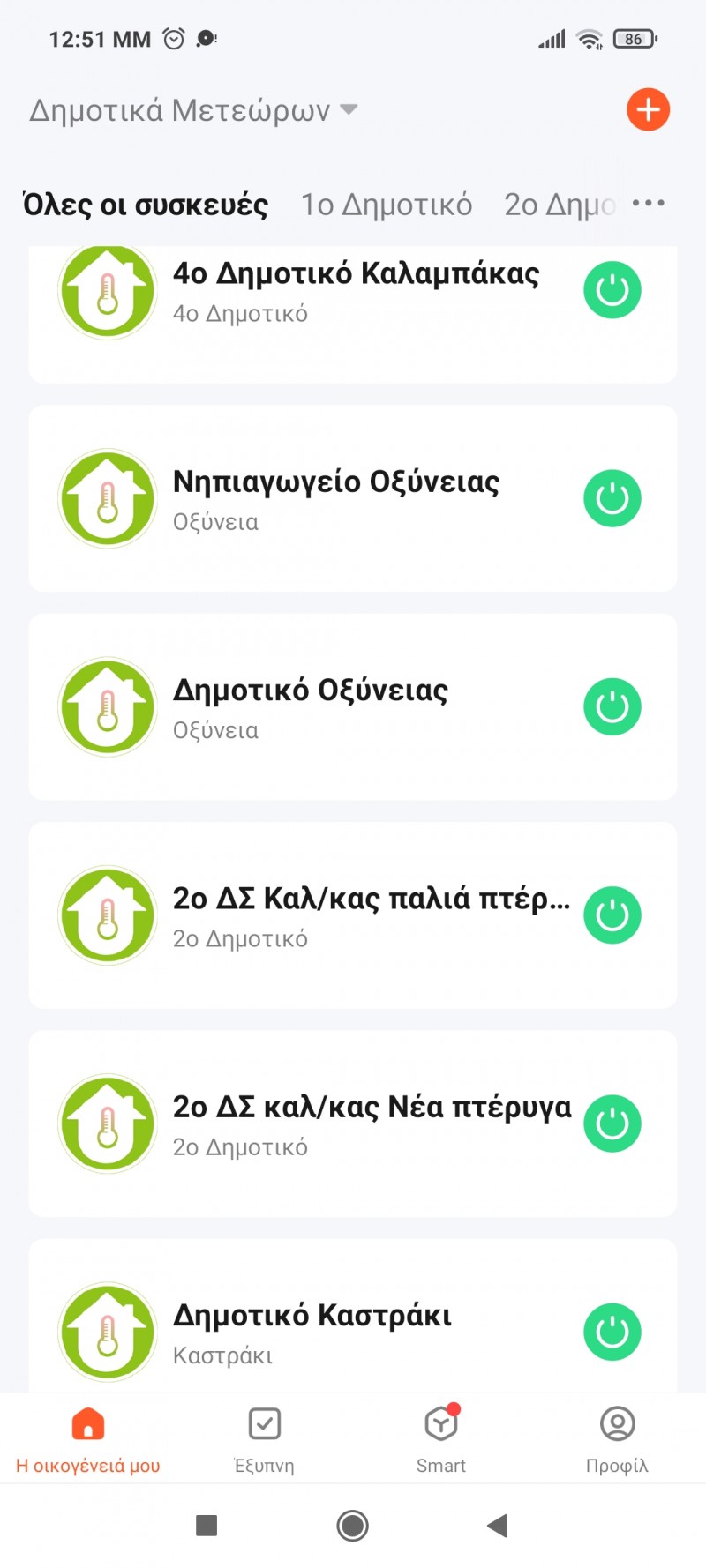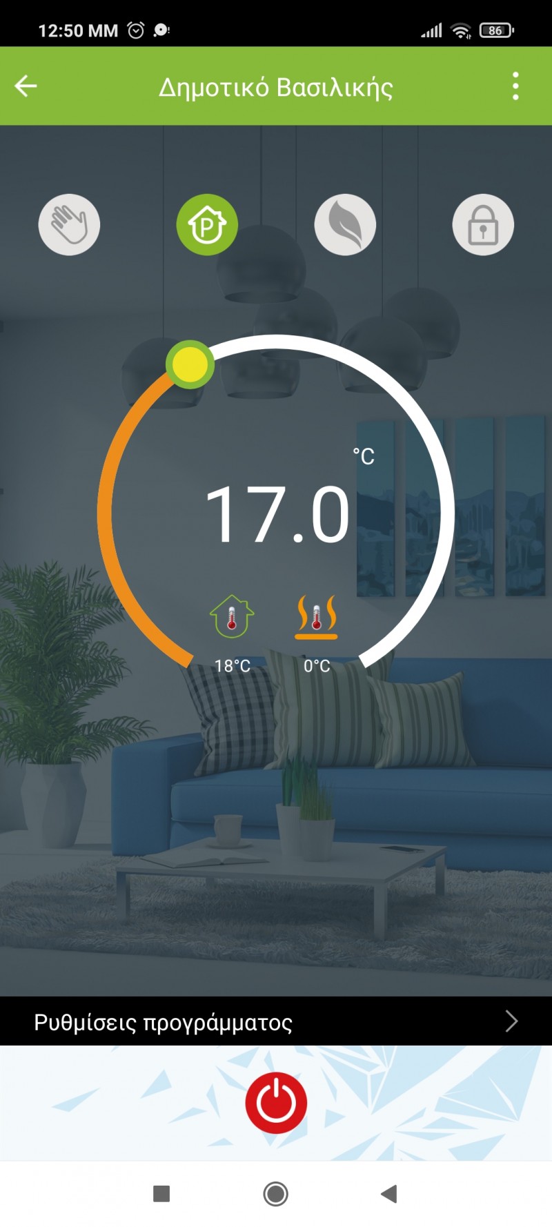 Με την χρήση των έξυπνων θερμοστατών, με ενσωματωμένη την λειτουργία Wifi. χρησιμοποιώντας εξ αποστάσεως smartphone ή tablet, μέσω ειδικής εφαρμογής, ο Δήμος πλέον σε πραγματικό χρόνο μπορεί να βλέπει την θερμοκρασία χώρου, την κατανάλωση, ενώ παράλληλα έχει την δυνατότητα να προγραμματίζει σε καθημερινή ή εβδομαδιαία βάση την λειτουργία κάθε καυστήρα μεμονωμένα.