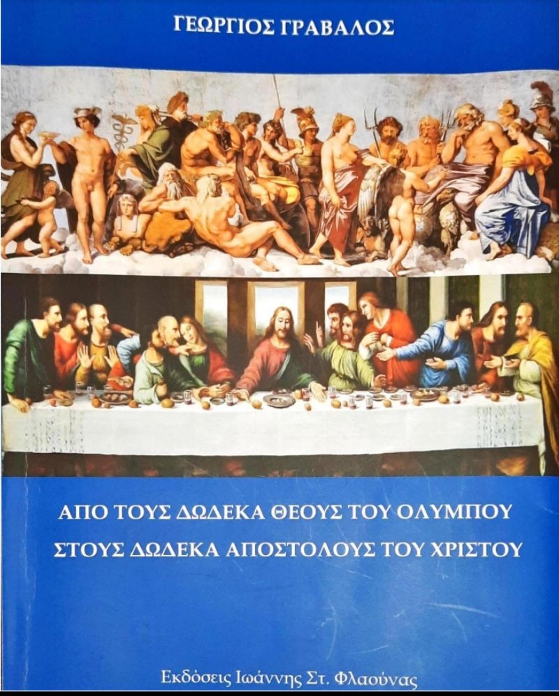 Κυκλοφόρησε πρόσφατα από τις εκδόσεις Ιωάννη Στ. Φλαούνα (Αθήνα) ένα καλαίσθητο πόνημα που φέρει τον τίτλο «ΑΠΟ ΤΟΥΣ ΔΩΔΕΚΑ ΘΕΟΥΣ ΤΟΥ ΟΛΥΜΠΟΥ ΣΤΟΥΣ ΔΩΔΕΚΑ ΑΠΟΣΤΟΛΟΥΣ ΤΟΥ ΧΡΙΣΤΟΥ». Είναι του εξαίρετου και ταλαντούχου συγγραφέα Γιώργου Γράβαλου, Υποστράτηγου Ε.Α., γέννημα θρέμμα Χασιώτης (Αγιόφυλλο). Ένα έργο γλαφυρό, μοναδικό, επιστημονικό και πρωτότυπο. Έχει δικά του ιδιαίτερα γνωρίσματα………..