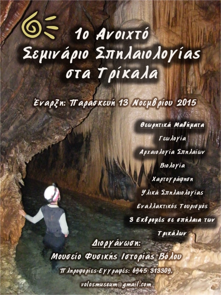 Για πρώτη φορά στην πόλη των Τρικάλων διοργανώνεται Ανοιχτό Σεμινάριο Σπηλαιολογίας με σκοπό την εκπαίδευση και κατάρτιση νέων σπηλαιολόγων, που θα συντελέσουν στην εξερεύνηση των σπηλαίων των Τρικάλων. Ένα σεμινάριο που απευθύνεται στον καθένα που τρέφει αγάπη για τη φύση και ιδιαίτερα για τις υπόγειες ομορφιές της.