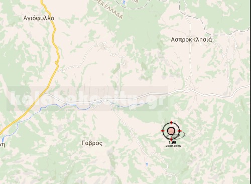 Συγκεκριμένα και σύμφωνα με τα στοιχεία, ανάμεσα από τα χωριά Γάβρος και Ασπροκκλησιά σημειώθηκε σεισμική δόνηση μεγέθους 1,9 βαθμών της κλίμακας Ρίχτερ με εστιακό βάθος 10 χλμ.