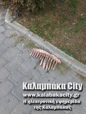 Μπροστά στο συντριβάνι της πλατείας Δημαρχείου όπου κατα καιρούς φωτογραφίζονται δεκάδες τουρίστες, ….νύφες, επισκέπτες, κ.α, βρισκόταν μέρος ζώου τα παΐδια του οποίου είχαν γίνει μεζές για τα αδέσποτα τα οποία το παράτησαν εκεί.