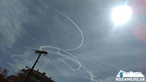 Μεσημέρι Τετάρτης 30 Μαρτίου και ο ουρανός της Κοζάνης γεμίζει με τις χαρακτηριστικές λευκές γραμμές που αφήνουν τα αεροπλάνα!