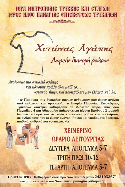 «Χιτώνας Αγάπης – Δωρεάν διανομή ρούχων» – Ι.Ν Παναγίας Επισκέψεως Τρικάλων